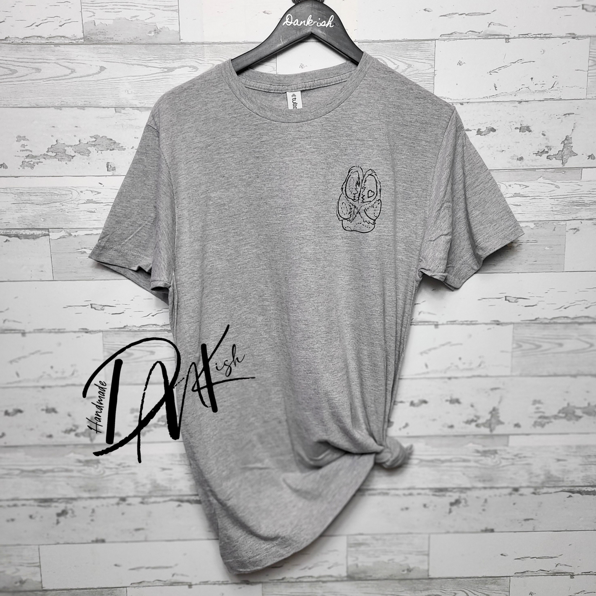 Small paw print will be on the left chest and the big print will be on the back unless otherwise noted.